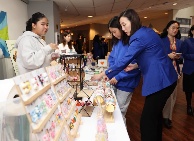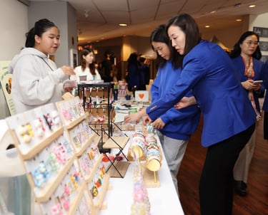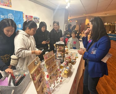 Students handled everything themselves—from laying out the displays to explaining the stories behind each item. Their booth quickly became a lively spot where guests stopped to browse, chat, and support youth-designed products with a purpose.